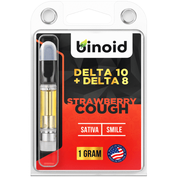 Our Delta 10 THC Vape Cartridge Strawberry Cough is one of the first real Delta 10 cartridges on the market. This innovative Delta 10 THC vape uses premium Delta 10, and our popular 92% Delta 8 paired with amazing terpene strains to give a positive and enjoyable mental buzz, with the classic body relaxation of Delta 8.